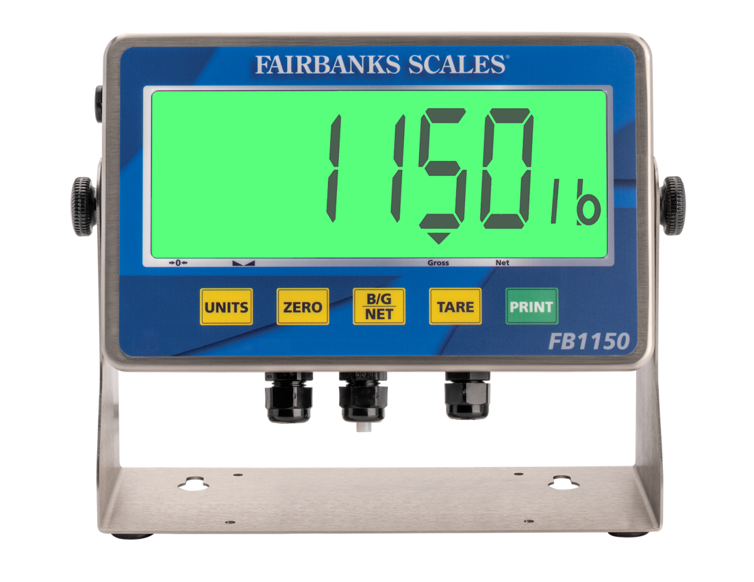 The FB1150 prioritizes accuracy, durability, and visibility for most common applications that perform Gross, Tare, Net weighments. Assembled at our factory in St. Johnsbury, Vermont, the FB1150 is a commercial grade instrument rated for up to 10,000 divisions commercial or 50,000 divisions for noncommercial. Print simple transaction tickets, transmit the data to a computer, or act as a remote display for compatible Fairbanks instruments using the included RS-232 serial port.